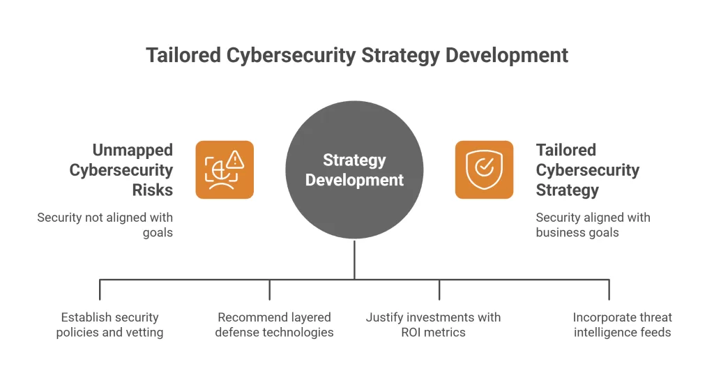 - Technology Roadmaps: Recommending layered defenses like next-gen firewalls, AI-driven anomaly detection, and secure access service edge (SASE) for remote workforces.